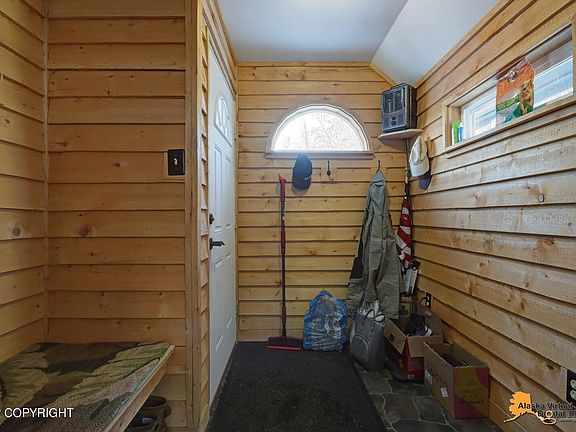 Welcome to this Tundra Rose Chalet home with an adorable floor plan, spacious yard and excellent neighborhood. Recent landscaping improvements offer a fabulous lawn and more for your outdoor enjoyment. Spacious arctic entry and cedar shake accents. The primary bedroom is the upper loft with closet and private bath; 2 bedrooms and main bath on entry level. Custom shed. Generous laundry room, too!This property also includes extensive front parking, workbenches in garage, raised garden beds, firepit, 220 in garage, wood shed and berry bushes. Previously owned by a professional forester, so you'll find a delightful variety of mature trees gracing the front yard. Shed that matches house to stay. 3-door gray shed does not stay. Note: Main access roads are paved, however, Northern Rose Lane and property driveway are unpaved. Square footage includes arctic entry space. Buyer to verify exact measurements as needed.