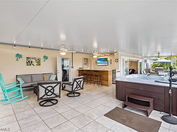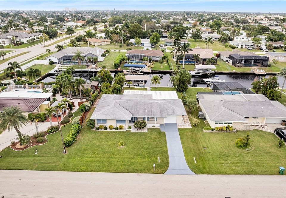 Discover the ideal blend of modern comfort & waterfront living in this recently remodeled 3-bed, 2-bath home w/ quick gulf access! Step into a contemporary haven w/ hurricane impact windows & doors, ensuring peace of mind & energy efficiency. The heart of this home lies in its expansive outdoor living space, featuring a spacious lanai complete w/ a wet bar, TV, & grill—an entertainer's dream. Enjoy the breathtaking sunsets from the western exposure, creating a picturesque backdrop for your evenings. The interior reflects meticulous attention to detail, showcasing many updates: wood cabinets, quartz countertops, vanities, & fixtures. The layout seamlessly combines style & functionality, offering a comfortable & inviting atmosphere. Water enthusiasts will appreciate the expansive composite dock, equipped w/ a 10k covered boat lift & solar lighting. Whether you're a boating enthusiast or simply seeking a serene waterfront lifestyle, this property provides the perfect setting. Situated in a prime location, this home offers the convenience of walking distance to downtown Cape Coral & Cape Coral Beach, while being a short drive away from Fort Myers, Fort Myers Beach, Sanibel, & Captiva.