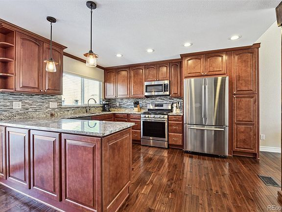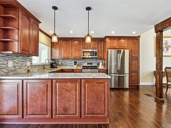 - Description: Cherry Soft Close Drawers & Cabinets, Slab Granite, Ss Appliances, Full Backsplash, Hardwood Floors, Recessed Cans And Pendant Lighting