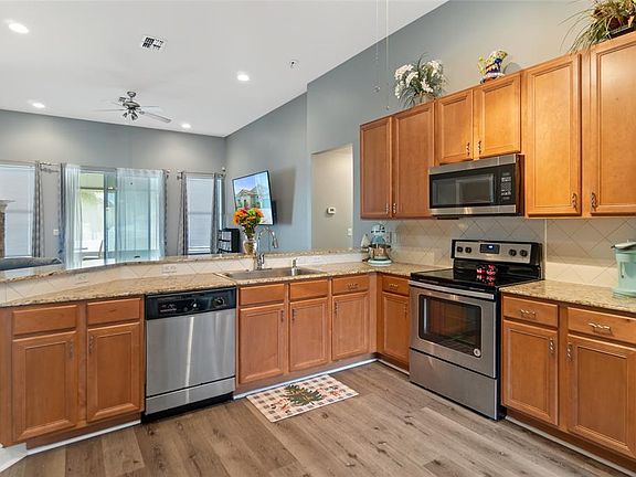 This beautiful, spacious, updated home is located in the Brackenwood subdivision of Sterling Hill. You'll love the brand new wood style, waterproof, vinyl flooring that runs throughout the home. The high ceilings really accent these spacious rooms for an open concept that's great for entertaining family and friends. This extra large kitchen has plenty of cabinet space, granite counters, stainless steel appliances, a new sink and conveniently opens to the living space. Turn your Master Bedroom into your personal escape with lots of space, a walk-in closet, and a beautiful en-suite bathroom. Remaining bedrooms are spacious and the fourth room could easily become a bedroom, office, media room or den. The huge covered and screened in patio provides additional outdoor living space. Dryer and new washer do convey. Sterling Hill has many wonderful amenities to offer including Olympic size swimming pool, a fitness center, lighted tennis courts, basketball courts, a volleyball court, a clubhouse with meeting rooms available, playgrounds and more. Conveniently located close to beaches, freeways, restaurants and shops, this is the perfect place to call HOME.