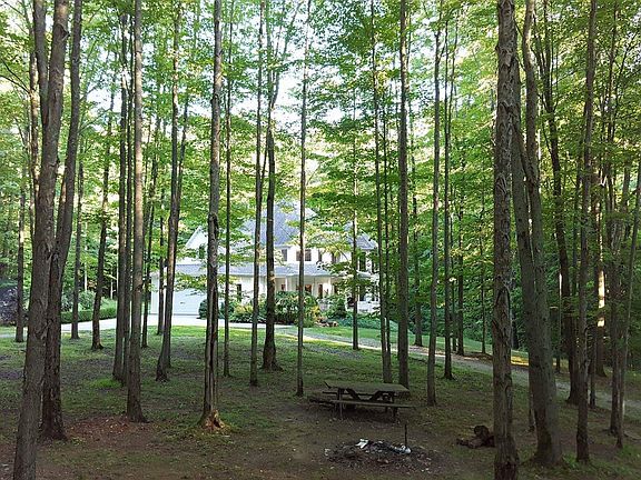 Impeccably maintained executive Victorian style home nestled on 10.3 wooded acres with trails that are perfect for four wheeling, dirt bike riding, morel mushroom hunting, or winding down while taking a journey to the three ravines. This home has many desirable features such as deeded access to Berry Lake, pocket doors, decorative crown molding, a peaceful back patio, a front porch with an awe inspiring view, a walkout basement with a spacious stamped patio where you can enjoy the wild turkeys and deer. This home also features a security system, speaker system throughout the home with room controls, large Pella windows with panoramic view of the woods , walk in closets. A new furnace in 2017 and a new water heater within the past 3 years. Don't hesitate to schedule your showing for this extravagent home!
