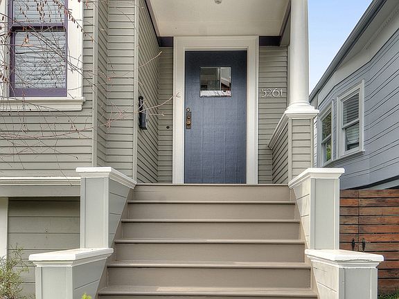 Situated in the heart of Rockridge, 5261 Miles Avenue is a delightful two bedroom/one and a half bath bungalow that shines with both charming original details and stylish upgrades. The moment you enter this enchanting home, you are drawn to its open concept living/dining area, which is graced by distinctive mouldings, hardwood floors, large windows through which light streams, built-in cabinetry, and fireplace. Pass through the dining area into the kitchen and still more magical space awaits, with stylish quartz countertops, a Wedgewood range, and deep farmhouse sink with a large window overlooking the spacious rear garden. The kitchen is flanked by an inviting room that could be configured as a family room or dining area. At 5261 Miles, even the powder room charms. Ascend the staircase at 5261 Miles and you can explore its upper level, which includes the home’s hallmark original wood floors. One bedroom has large windows that face the street, while the second overlooks the rear garden and features a large walk-in closet. Both bedrooms are bathed in light. A beautiful hallway bath includes a shower over tub. Accessible from the kitchen area are the deck and the spacious rear garden of 5261 Miles, which is framed by bamboo and mature trees. Raised beds will delight home gardeners, and the rear garden is well-suited to outdoor entertaining. 5261 Miles Avenue has a Walk Score of 87 per Walkscore.com.