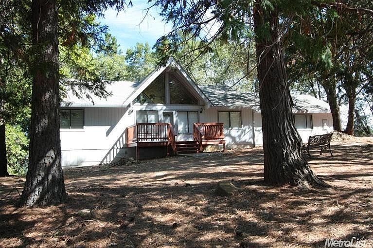 New front entry deck with a serene setting from this knoll top 3 acs. From the entry, your attention is drawn through the living area to captivating canyon views. Cathedral ceilings of warm pine,floor to ceiling windows & gas stove to take off the chill of those cool autumn mornings. Kitchen breakfast nook for delightful dining in the pines, plus formal area. Remote master suite. Bath recently updated with tiled floor,tub surround & more. Freshly painted interior & garage fl. Back deck pergola.