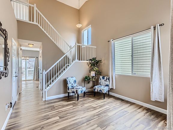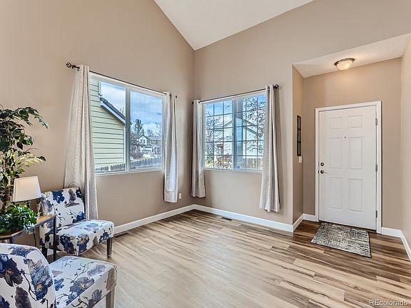A home where dreams begin… this lovely, updated home located in the sought-after Cherry Creek School District with so many special features to discover. The welcoming front porch is shaded by a lovely mature maple. As you enter the home, you will love the soaring vaulted ceilings, the luxury vinyl plank flooring, and a nicely sized living room. Walk thru to the open concept kitchen, dining space, conveniently located powder room bath and family room with a cozy gas fireplace, newer stainless appliances, light fixtures, 42” cabinets and a cooling ceiling fan complete the convenient kitchen/dining/family room area. Just out the sliding glass door you’ll find the home backs to an amazing open space to be enjoyed on the newer low maintenance Trex plank deck with a shady cover. The yard is filled with amazing Autumn Blaze maple trees to enjoy the shade every summer and the gorgeous colors every fall! Back inside the home and up the stairs you will find newer carpet in the nicely sized second and third bedrooms and a full bath. The large primary bedroom also has newer carpet, newer ceiling fan, a good-sized walk-in closet, a double sink vanity with newer light fixtures and a full soaking tub with shower. Down to the unfinished basement, there is a walk-out slider to the backyard and a rough-in for a future bathroom. Lots of space for storage too! The exterior was recently (2021) professionally painted. The concrete tile roof is hail resistant and may save money on your homeowner's insurance.The water heater is also newer. To top off this lovely home, it is walking distance to schools and pocket parks, just minutes from E-470, great shopping and dining in Southlands. Don’t hesitate to see this great move-in ready property – it will be gone in a flash!