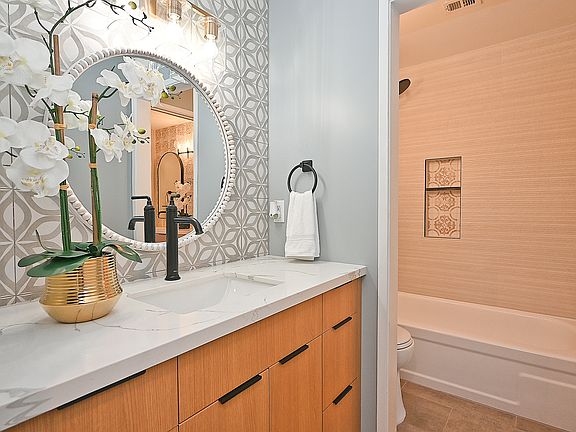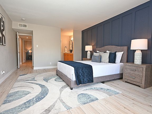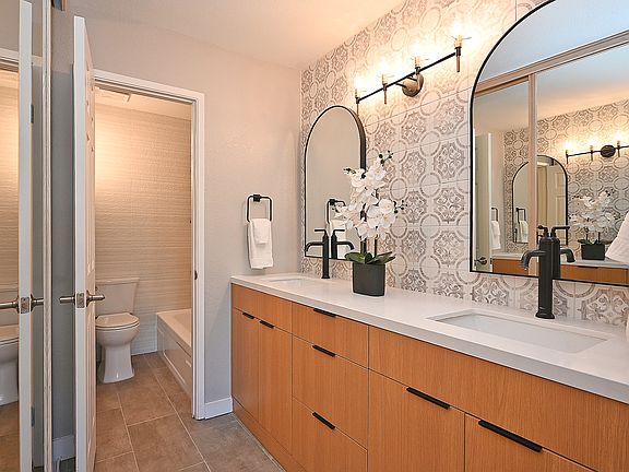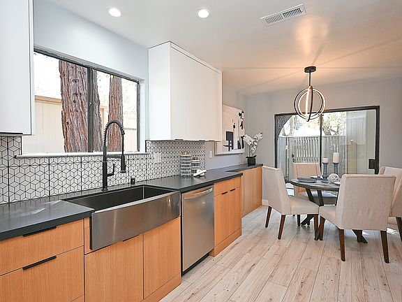 Located in the heart of Pleasanton, this stunning 2-bed, 1-bath townhouse is just minutes from Stoneridge Mall, BART, and major freeways. The home features an open layout with an accent wall in the family room, gorgeous tile fireplace, and a private patio with new concrete and accent artificial turf with large patio doors that makes indoor-outdoor living an entertainer's dream. The kitchen shines with new stainless-steel appliances, Scandinavian dual toned cabinets that extend into the nook, and custom tile. Both bedrooms feature accent walls, and the Jack-and-Jill bathroom has been beautifully renovated with designer tile full surrounds, Scandinavian oak cabinets, plumbing fixtures, and dual vanity for the primary suite. New waterproof laminate flooring, fresh paint, and updated fixtures add to the home's charm. Enjoy HOA amenities like a pool, tennis/pickleball courts, and a clubhouse. It's the perfect place to call home!