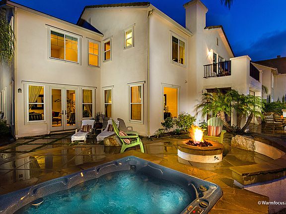 PANORAMIC VIEWS (Ocean, City Lights, Back Country & Snow Capped Mountains from Private end of deep CUL DE SAC at top of coveted Spyglass Hills . Enjoy the view from the BACKYARD OASIS complete w/ Outdoor Kitchen, Spa, Fire Pit, Outdoor Speakers, Water features & Putting Green! Tasteful UPGRADES to FINISH (Cabinets, Ceasarstone Counters, Stainless Steel Appliances & Hand scraped Distressed Wood Floors) & STRUCTURE (Deck, 5th BR & 4th Bath instead of loft). Enjoy the SUNRISE in front and the SUNSET in back! One of the best locations in coveted Spyglass Hills the homes at the end of Coleridge Court were among the first homes selected by the buyers at the top of the priority list! Wonderful coastal breezes nearly all the time but we've got CENTRAL A/C just in case! FULL BEDROOM with PRIVATE ENSUITE BATH DOWNSTAIRS plus a Powder Room for guests. Sellers say they can see SIX FIREWORKS displays on July 4th!!! Call DAVID at 760-822-7312 to see this home today!!!