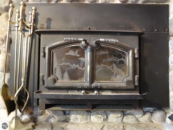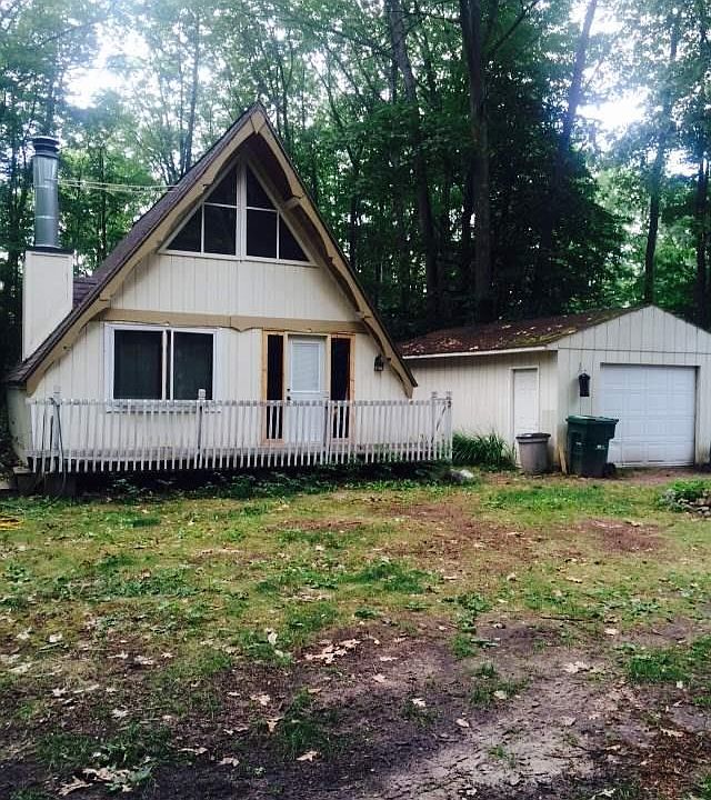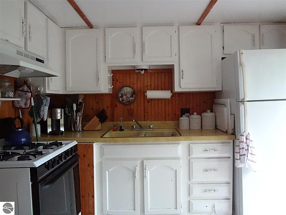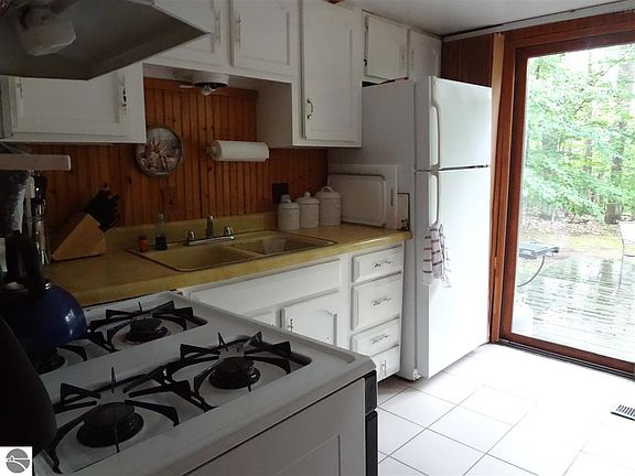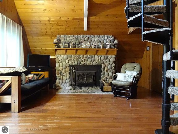 Cute chalet tucked between Sanford Lake and Lake Ann. 2 bedroom / 1 bath with wood and ceramic flooring. Beautiful Fieldstone fire place and master loft. Detached garage.