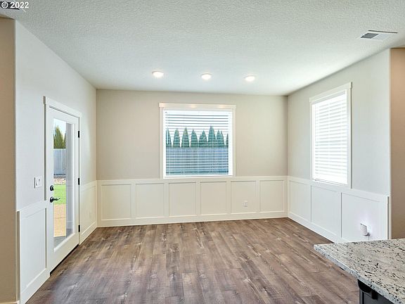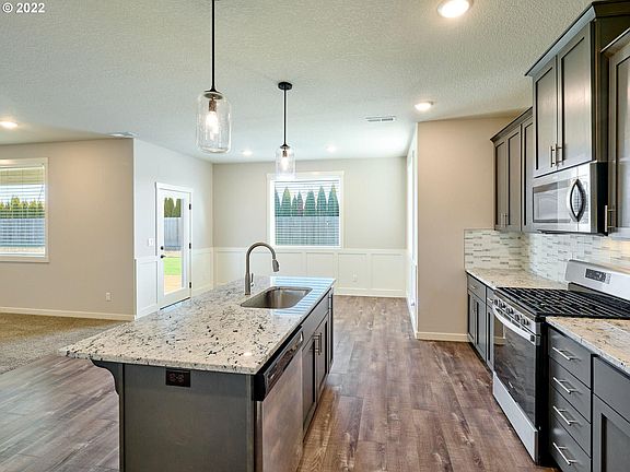 Custom home built by Forrest Ridge Homes on extra large lot!  All the goodies you expect - wide plank laminate floors, granite thru-out, wainscot in dining room, gourmet kitchen with stainless appliances, gas range, pantry and island with eat bar.  Master suite has a coffered ceiling; bathroom with double sinks, huge walk-in closet with built-ins and 5' shower.  Large extra bedrooms.  Low maintenance yard with artificial turf, extra concrete, shed and RV parking with power.  EV charging station.
