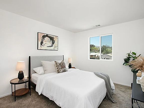 Move-in ready with zero HOA fees or mello roos! This thoughtfully designed reverse floor plan features the living room, dining room, kitchen, and primary bedroom on the first floor. The second level offers two bedrooms plus a large den that can be used as a work-from-home space or playroom. Enjoy sweeping bridge and skyline views while laboring over dinner and the dishes. Eco-friendly electric home includes a spacious yard, EV ready two car garage, AC, LED lighting throughout, and pre-plumbed for solar. VA buyers welcome!