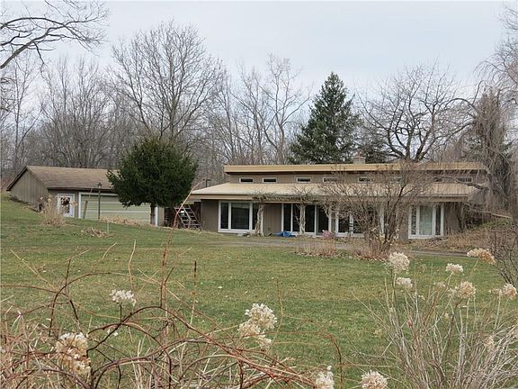 Very Unique property.. 1981 Ranch home built into a hillside..poured concrete walls, well insulated makes this home energy efficient & the wall of newer windows allows for loads of natural light & summer breezes. 3 bedrooms, 2 full baths (master), laundry room & spacious Great room. detached car garage, 2 + stall horse barn, 98'built large pole barn for motor home, huge pond with bass & blue gills, woods, open sunny area, established flower gardens, hop skip & jump from greenway trail (horseback riding, walking, bicycle rides) minutes from shopping, geneseo, mt.morris, I390 & Letchworth State Park . cable TV available, public water connected. Peaceful & Private.. Rd Frontage on Wheelock & Rt 36. seller receives $ for billboard ad on 36.