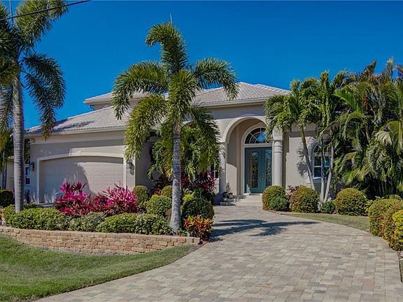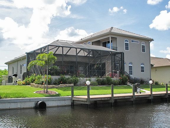 1.5 story custom waterfront home built by Fero Construction, one of the premier custom builders in Southwest Florida. Circular paver driveway and 2.5 car garage with work area on a quiet, waterfront street, a two minute boat ride to Myakka River, leading to Charlotte Harbor and the Gulf of Mexico. The home has a beautiful barrel tile roof. Open split-plan with guest/master suite with Roman shower on first floor. 1,100 sq ft owners' suite on second floor has a large balcony overlooking the pool and river, a perfect place for your morning coffee. A large bathroom with separate vanities and Roman shower with two shower heads, a huge walk-in closet, exercise room, and air-conditioned storage room. Both suites have large, tiled Roman showers. In addition to the two suites, there is another large bedroom and an office. Custom kitchen with 30' of granite counters, island with sink, custom wood cabinets, tile backsplash, raised dishwasher, breakfast bar, high-tech appliances and 48" built-in fridge with wood cabinetry doors. Large walk-in pantry, and laundry room is just off the kitchen. 14' ceiling in foyer and living room with lighted double-tray; 12' or 10' ceilings in rest of home. 8' doors throughout. Heated Pebble-Tec saltwater pool and spa with beach entrance, waterfall, and built-in plantings. A screened enclosure covers the pool area, keeping bugs and debris from ruining your outdoor relaxation. Summer kitchen with built in stainless grill and sink in the lanai. 80' seawall (2005) with 65' trex dock (2006) and 10,000 lb boat lift with cover. Automatic, whole-house generator with buried 400 gal propane tank. Two A/C units with zoning cool this energy-efficient home with Icynene insulation. All windows, 8' sliding doors, and leaded-glass double front doors are either impact glass or have electric rolldown or accordion hurricane shutters. Beautiful landscaping, accent lighting, and Empire zoysia lawn complete the look of this gorgeous custom home. An underground sprinkler system keeps it all looking great. Next door is a lot that has been transferred into a park-like setting with trees and colorful bushes. The lot is not included with the home, but is available for purchase.
