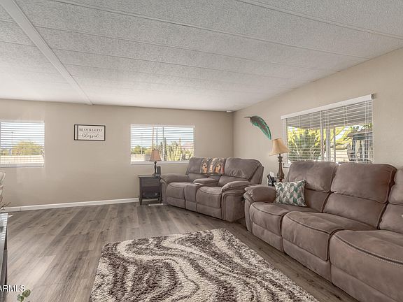 Updated, well maintained home in the highly desirable Apache Wells 55+ Community. This gem is located near the 12th green with beautiful views of the pond and sunsets. The covered patio offers plenty of room for relaxing and watching the golfers, or entertaining your friends and family. This home has a large family room, stainless steel appliances in the kitchen, ample storage throughout and a nice bonus room. Apache Wells has activities for everyone including pickle ball, golf, woodworking, billiards, corn-hole, water aerobics in the heated pool and so much more.