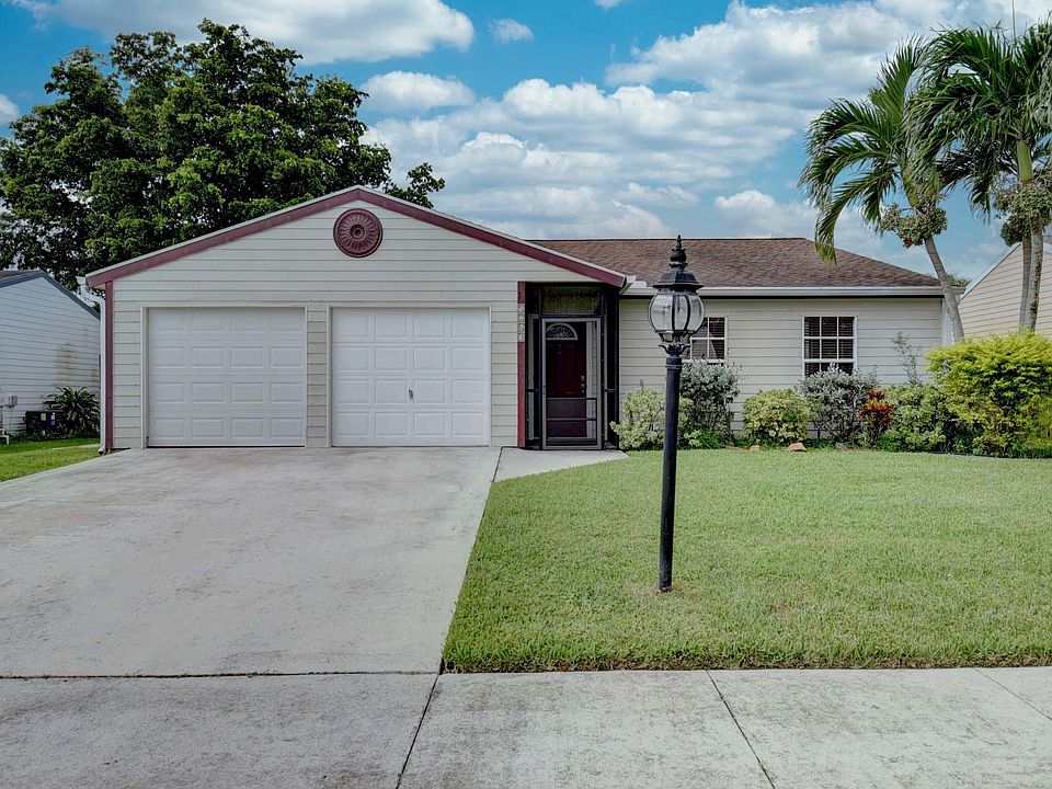 Move right in! This adorable 3 bed/2 bath home with a 2-car garage offers an open split floor plan, beautiful kitchen with new appliances and granite countertops, new laminate floors - no carpeting, large fenced in yard with screened in and covered patio - quiet, private and perfect for kids and pets, new water heater, new A/C and impeccably maintained inside and out. Located within miles of A-rated schools, Countrywood is a great family community with low HOA - just $30 per month - and close to the Turnpike and Wellington. Do not miss seeing this perfect family home!