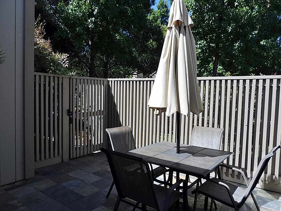 SINGLE STORY END UNIT! Beautiful location-quick access to BART & Fwys. Updated thruout including flooring, trim, doors, lighting, wdo treatments, kitchen granite, appliances & fixtures, remodeled baths. Front slate patio +private rear patio. Light & Bright w/vaulted ceilings. A JEWEL!