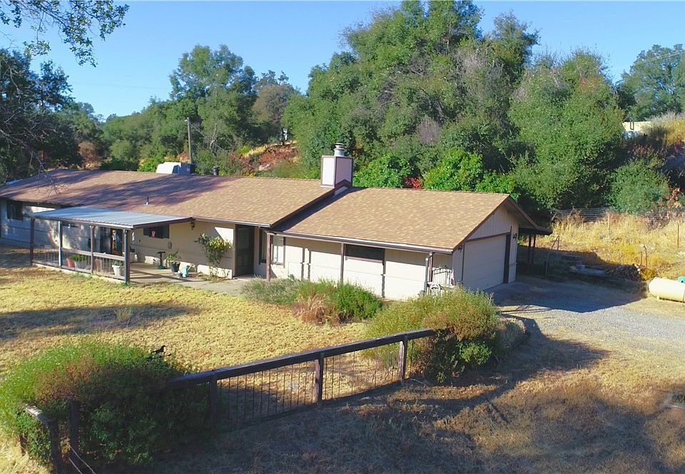 Looking for your first home with NO HOA FEE? Be sure to take a look at this sweet home on 2.53 ACRES. Currently Two Bedrooms, but would be an easy fix to put back to 3 bedrooms simply by adding a wall. Septic system already approved for 3 Bedrooms. Dining area off kitchen features a nice woodstove making the kitchen/eating area a cozy place to be. And for gathering with friends or family the Great Room is quite sizeable with a pretty rock fireplace as the main focal point. Back porch, accessible from the Master Bedroom offers privacy and is the perfect spot for sipping your morning coffee. Master Bath has walk-in shower as well as a walk-in closet. Indoor Laundry room also has access to outdoors. Handy for those who would like to put up a solar clothesline. Home features a nice, functional floor plan. Setting is private, but still close to town. Relax while keeping an eye on the kids enjoying the Clubhouse while taking in the lovely Mountain Views. Fenced areas will be perfect for those FFA projects. Additional amenities include.. New Roof (2022), Attached Two Car Garage, Circular Drive, Garden Area, RV Cover and Two storage sheds. New Microwave, Hot Water Heater, Pressure Tank and New Gutters. 2500 gallon water storage tank too. All of this only 10 minutes from Mariposa Town. Walking distance from Mariposa Middle School. Don't hesitate to Schedule your viewing.
