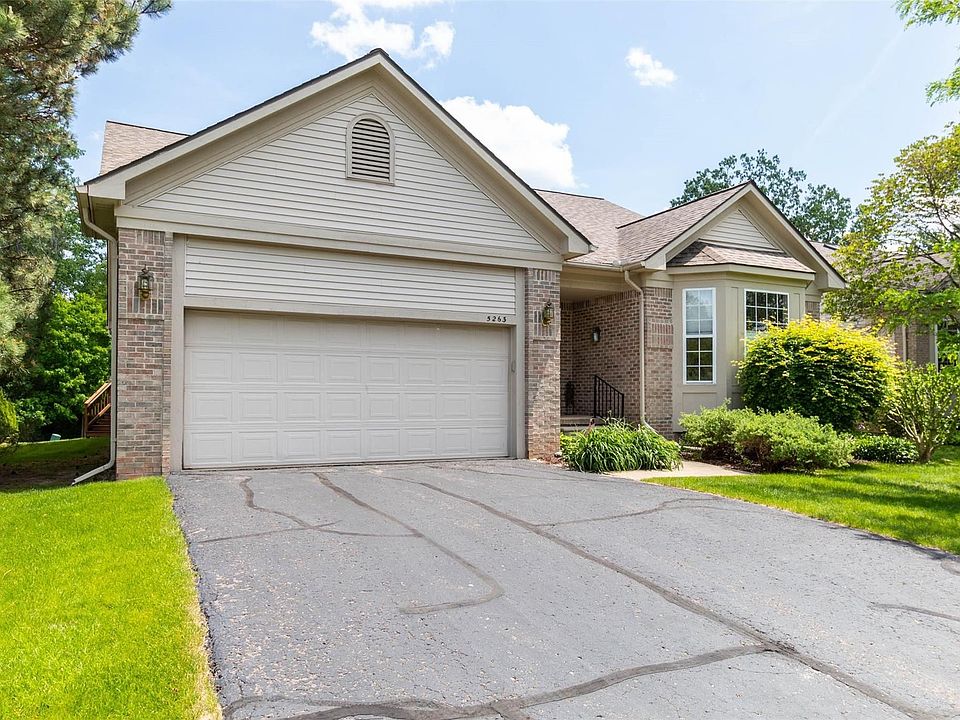Detached ranch condo with open floor plan and hardwood floors throughout, except bedrooms. Backing to park like common area to give you privacy when relaxing on your deck. Vaulted ceilings with skylights and floor to ceiling windows bring in the natural light. Kitchen with island, breakfast room and walk-in pantry. Living room has gas fireplace. Dining room has a doorwall to give you access to the rear yard and deck. Luxurious primary bedroom with 2 oversize walk-in closets and attached bath with dual sinks, stall shower, jetted tub, and soaring ceiling. Second bedroom is currently being used as a library and can be easily converted with a full bath just outside of the room. First floor laundry and mud area off the garage entrance (2 cars). Basement has been roughed in and ready to finish with 3rd bathroom. Just steps away from the pool. Great location in the development.