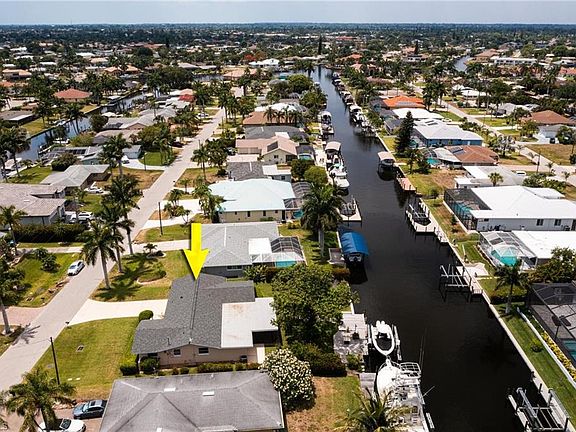 This direct sailboat access property is a boater's dream! Located in Cape Coral's highly desired Yacht Club neighborhood, it is only minutes by boat to open water, a short distance to the beautiful Gulf of Mexico, and an easy bike ride to downtown Cape Coral, the Yacht Club community beach, fishing pier, pool, and tennis courts! All with no HOA fees! The property is situated on a quiet cul-de-sac, surrounded by beautiful homes, and has plenty of room for a pool! Inside, a you will find a split bedroom floor plan, a remodeled "open concept" kitchen with granite counter tops and stainless steel appliances, an impressive great room that is great for entertaining, and oversized pocket sliders that make for an incredible view. There is porcelain tile throughout- NO CARPET, newer AC, a hurricane code garage door, a BRAND NEW roof, composite dock w/ 10,000 lb boat lift, and an attached storage shed (perfect for an owner's closet). Do not miss this rare opportunity, it will not last long!