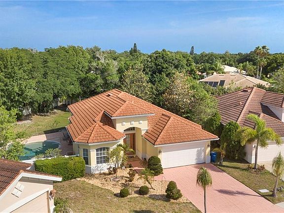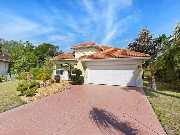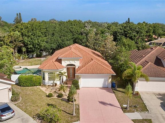 Absolutely Stunning Home with Large Fenced Lot. Concrete Block construction, Tile roof. Cul-de-Sac location. Open Air Custom pool, spa, kiddie pool with Paver decking and No cage. Beautiful Paver driveway and walkway. 9' Ceilings throughout. Recent remodeled Kitchen. Updates include new Coastal Cream cabinets with crown, New Granite Counter tops, Newer Stainless Steel Appliances, island, double pantry, tile back splash, opened pass through to dining room. Breakfast room has bay windows with Plantation Shutters and is open to Kitchen. Large Living and Dining room combination. New Weathered Oak Vinyl Plank Flooring installed in all the main living areas. New Carpet in 2 of the bedrooms. Living Room has glass sliders to Screened Lanai. 3rd Bedroom has double door if you want to use it for an Office/Den. Master has walk-in closet, and Master Bath with separate tub, shower and dual sinks. Indoor Laundry room just off of garage. High ceilings in the garage with storage shelving. Newer water heater. Highly sought after school districts. Take advantage of low property taxes for the rest of 2020 since current bill is low as Seller is a disabled veteran. This is a real gem and will not last long!