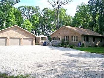NATURE HAS CARVED OUT A PLACE FOR THIS 3-4 BEDROOM ALMOST NEW BRICK BEAUTY! Wooded privacy adorns this 3 bedroom 2.5 bath home. The interior features include a large kitchen with solid Oak cabinetry, custom ceramic countertops, recessed lighting, stainless appliances, and enough room at the cooktop island to seat 4 people! The master bedroom has a double closet entryway to the large master bath. The basement has an additional 600 finished square feet and the rest of the basement is drywall-ready with plumbing roughed-in for a wet bar. Home has a Kinetico water softener, On-Demand hot water system, and a woodburning stove. Owner will even include all the wood he has for the homes woodburner. The exterior wraparound deck opens from living room and dining room to overlook the gorgeous backyard and countryside. Finally, don't forget about the 40'x 40' 6 CAR GARAGE, which is a brick and vinyl dream. IF YOU ARE CONSIDERING NEW CONSTRUCTION, CONSIDER THIS HOME. Hot tub is negotiable.