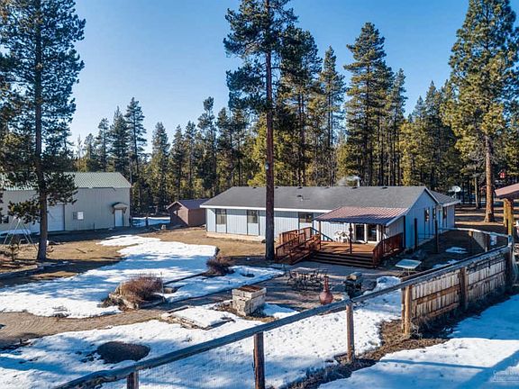 Beautiful treed & fenced 2.18 acres with a ranch home in quiet setting within the Pines. Private entertainers back yard with deck, brick paved walk way, fire pit, sprinkler system and landscaped. Single level 3 Bedroom 2.5 Bath home with newer 40 year roof and septic. Huge 40x60 shop with heated office, 14' pass through doors, 10' side door, 220 power and concrete floor. Garden shed with power & sprinkler controls. Plenty of room for RV's with 30 amp power & carport. Close to High Lakes and outdoor fun!