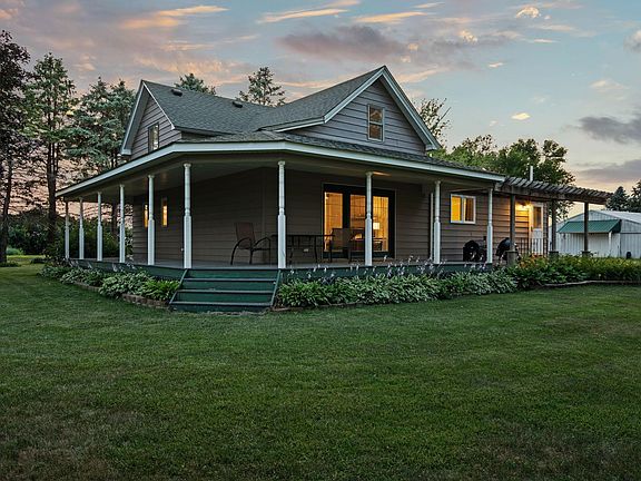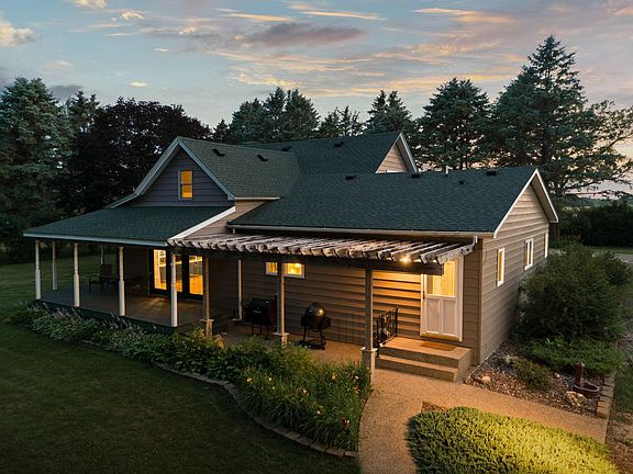 If you have been looking for a little slice to design that hobby farm life - look no further! Just a few minutes from Austin, this acreage sits on 5.4 acres and is surrounded by mature trees, hugging you in your own oasis. Step inside to a tastefully updated farmhouse with everything you need on the main level including kitchen, dining, living, laundry, 2 baths and a bedroom. Modern kitchen with a rustic vibe - white cabinets and darker countertops/backsplash. Nice mix of old world charm and new with a perfect blend of original hardwoods and newer LVP flooring. 3 bedrooms on the upper level. 60x8 south & east facing wrap around and covered composite porch. Double pane windows throughout and metal siding. Roughly 2.2 acres of pasture on the eastern part of the property. New septic to be installed. Outbuildings include: 36x30 3-Stall Garage, 32x60 Hog Barn, 32x14 1-Stall Garage, 14x26 Granary, & 20x20 1-Stall Garage. Come take a tour before someone else scoops up this amazing property!