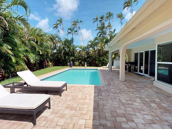WELCOME HOME TO PARADISE! IMMACULATE EAST BOCA HOME WITH ADDISON MIZNER SCHOOL. THIS HOME HAS BEEN COMPLETELY RENOVATED. INCREDIBLY PRIVATE 10K+SF LOT. HURRICANE IMPACT WINDOWS & DOORS THROUGHOUT. SELLER SPARED NO EXPENSE WITH THEIR RENOVATION; CUSTOM CONTEMPORARY KITCHEN W/GRANITE COUNTERS, HIGH-END STAINLESS-STEEL APPLIANCES; BREAKFAST NOOK OVERLOOKING TROPICAL OASIS YARD; SPLIT BEDRM FLR PLAN; OVERSIZED ULTRA-LUXURIOUS ENSUITE W/CUSTOM GLASS/STONE SHOWER, HIS & HER VANITIES W/GRANITE; HUGE WALK-IN CLOSET; VOLUME CEILINGS, SKYLIGHT, MAINTENANCE FREE HRDWD FLRS; FORMAL FAMILY ROOM W/BUILT IN WINE COOLER/BAR; FRENCH SLIDING GLASS DOOR TO COVERED PATIO; LARGE DINING AREA & LR; 2 FULL BATHS PLUS A POWDER RM; SEPARATE LAUNDRY RM INSIDE HOME AND NOT IN GARAGE; THE BACKYARD ON