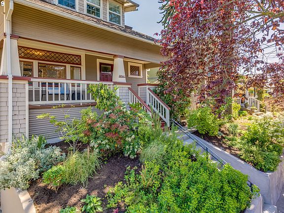 Exquisite Craftsman in Alberta Arts! Covered porch nestled above native flora welcomes you to this thoughtfully updated home. The cozy fireplace is adorned by builtins, picture rails, beam ceilings & fir floors in LV & DR. Modernized kitchen unites the sunroom. Grand master suite w/skylights & luxurious closets. Generous room sizes. Detached, finished garage for office or yoga. Freshly landscaped backyard. Near restaurants parks & more! [Home Energy Score = 5. HES Report at https://rpt.greenbuildingregistry.com/hes/OR10135420]