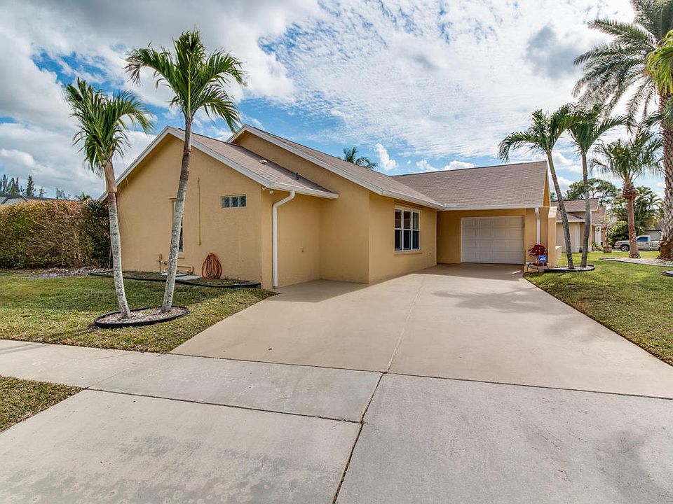 WELCOME TO YOUR NEW HOME!! This beautiful 2/2/1 on a large corner lot is the definition of move in ready! Here are some of the features inside: Beautiful open floor plan with split bedrooms, Updated kitchen with SS appliances, Diagonal title throughout home, Upgraded bathrooms, Newer roof, Newer windows, Hurricane shutters, Walk-in closets, New interior paint, Large back yard with privacy fence, Backyard patio surface, Long driveway, Mature palms and growing citrus trees, Sprinkler system, and Gutters. Neighborhood features: GREAT School District, Club house, Swimming pool, Playground, Basketball courts, Tennis courts, Long walking/jogging track that surrounds the perimeter of the neighborhood, and many fishable lakes that allow boats with trolling motors. Come preview TODAY!