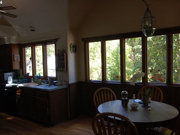 This home is perfect for the young at heart nature lover. There are treetop views out every window with Martin St & Ridgeline out the front door inviting you to numerous hiking trails. Beautiful vaulted ceilings in the kitchen/dining with newly refinished oak floors. Cozy living room with fireplace, french doors opening to a 3rd bedroom/office space. Two bedrooms & bathroom have vaulted ceilings with walk-in closet in the primary bedroom. The house has 2 sides of wrap-around decking that leads up to a platform in the woods fondly known as "the gin & tonic deck". The oversized garage has plenty of storage or room for a shop. This home flows well, lives large and is very comfortable. Third bedroom is used as office.