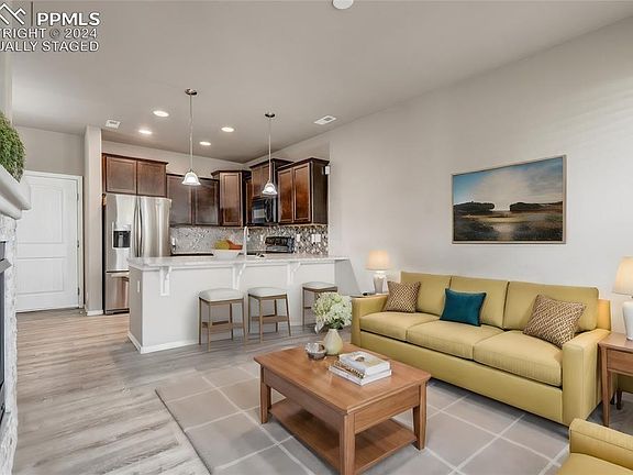 Welcome to this delightful home! This stunning two-bedroom, three-bathroom residence offers the perfect blend of comfort, style, and convenience. There is a covered front patio that borders an open, grassy area. Step inside to discover the inviting main level designed with an open concept layout, ideal for both entertaining and everyday living. The cozy gas fireplace in the living area adds a touch of warmth and elegance. The well laid out kitchen features modern appliances with a flat-top stove, ample counter space, and a breakfast bar, making meal preparation a delight. The attached two-car garage ensures safe and easy access to the home into the dining room/kitchen area, and provides plenty of storage space for vehicles and more. Upstairs, you'll find two comfortable suites, each with a private bathroom. The primary suite includes a bathroom with a soaking tub, separate water closet, walk in closet, and offers a serene retreat after a long day. The secondary suite is perfect for family, guests, or an office. The conveniently located upper-level laundry room has a large closet and is equipped with modern appliances, making laundry day a breeze with no stairs to climb. This home is not just a place to live, but also a lifestyle. With its thoughtful design, prime location, and upgraded finishes, this residence is ready to welcome you home. Close to everything - military bases, shopping, restaurants, hospitals, and more. Don't miss the opportunity to make this striking property yours! Some photos virtually staged.
