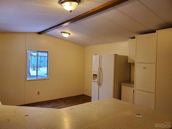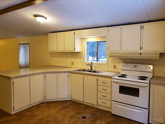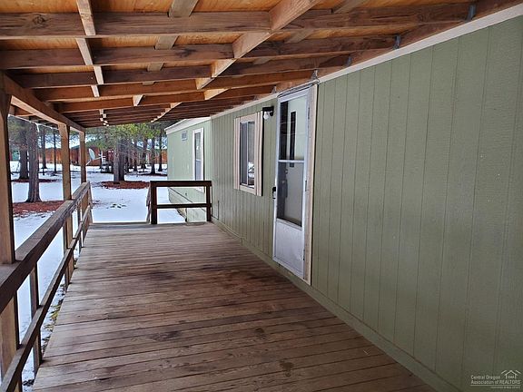 Cozy 2 bedroom home with great covered porch sits back from the road on hard to find 2.5 acres in Forest View subdivision - roads are plowed through road district that is included in taxes. Plowing includes not leaving a berm in your driveway. Great room is located at one end of home with bath separating the two bedrooms. Lots of counter space and cupboard space in kitchen. Fenced in garden area in the front gets lots of summer sun. Lean to on the side of the garage is the perfect place to store those extras like quads, boat or other Central Oregon toys. This single wide manufactured home is in great shape. detached 2 car garage, covered front porch.
