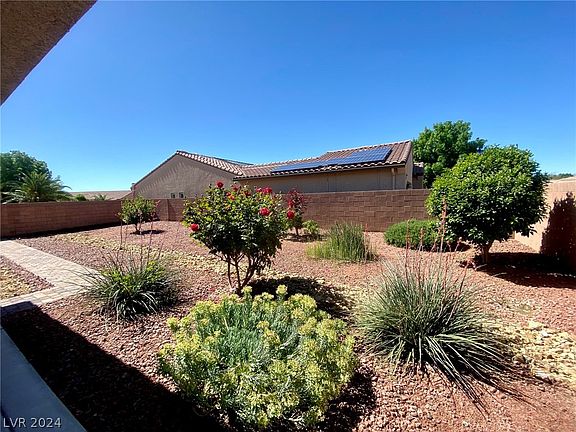SOLAR PAID IN FULL, JUST INSTALLED IN 2022! Enjoy efficiency and cost savings in this beautiful home located in the Mountain Golf Course community offering 2 pools, spa, fitness room and restaurant. This home features 3 bedrooms, 2.5 baths plus a den that can easily be converted into a fourth bedroom or used as an office. Gourmet kitchen has a large island and breakfast bar, stainless steel appliances, reverse osmosis system, granite countertops and tile flooring. The primary suite includes double sinks, separate shower and tub, makeup vanity and a large walking closet. Additional highlights include 2 other bedrooms that share a bathroom, 3 car garage with plenty of room for your vehicles, storage and hobbies, spacious laundry room, water softener and cameras on the outside of the property. Situated on an oversized lot with exquisite desert landscaping and large covered patio, the residence offers a blend of comfort and style.