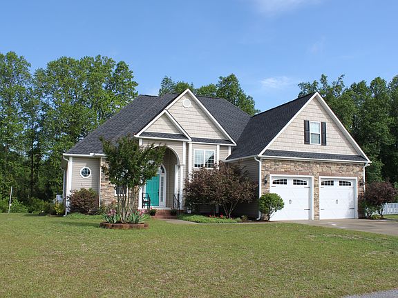 Gorgeous home with an open floor layout featuring 13 ft. high ceilings, double crown molding, a living room with a gas fireplace and hardwood throughout to the formal dining room. Eat in, tiled kitchen with all stainless steel appliances and food pantry. Three bedrooms and a huge private bonus room upstairs with access to an attic storage area. Spacious master suite with double tray ceiling, double vanity, jetted tub, separate shower and walk-in closet. Enjoy the tranquil setting of the woods beyond the backyard from a large screened in porch and deck. Oversized two car garage, programmable irrigation system, and home security system. Neighborhood Description This is a great neighborhood in a rural setting with its own playground, pavilion and paved walking trail. Superior, award winning school district. Enjoyable, rural, light traffic 20 minute commute to Ft. Bragg's Honeycutt gate.