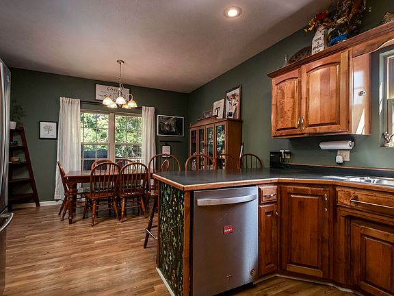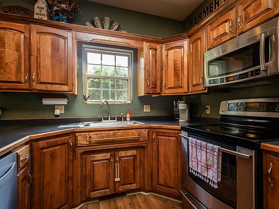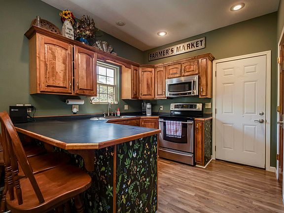 This 4 bedroom, 3 bath home features an open, spacious floor plan with new flooring, new trim and freshly painted walls. The walk out basement, John Deere room, and storm shelter are great additions as well. The large deck in the back backs up to the woods. Walking distance to the school and both small town and country living all in one!!