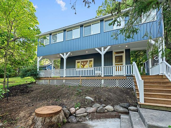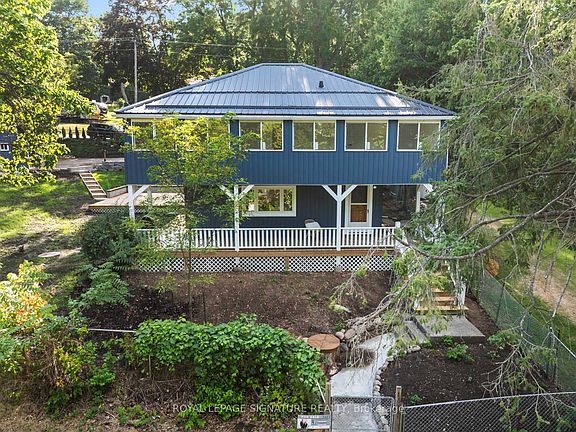 Location, Location, Location! This extensively renovated modern 2-storey century home in the charming village of Gores Landing blends timeless character with contemporary style inside and out* Featuring a sleek white glossy kitchen with stone backsplash, wooden countertops, and Whirlpool stainless steel appliances, this home offers a bright and open main floor with 9' ceilings, top-quality 9mm vinyl flooring, 5.5" baseboards, pot lights, and modern doors, hardware, and closets*Enjoy contemporary bathrooms, a cozy covered front porch, and an entertainer's dream 20' x 22' wooden deck plus 20' x 14'cement patio. Major upgrades include a metal roof, reinforced foundation with steel posts, all new siding and skirting (2025), 50"blown-in attic insulation, updated plumbing, custom-built blue shed 10 FT x 16 FT, Armour stone retaining wall supporting driveway (2025-$30K)7-car driveway, high-speed LTE internet & more(See List Of Upgrades Attached.)Set on a large, private, fully fenced treed lot with seasonal lake, marina & islands views, this property fronts on both Plank Rd and Kelly Rd with a park zone on one side. Just a short stroll to the waters edge of Rice Lake, Gores Landing boat launch, and the marina. Incredible value in a sought-after lakeside community!