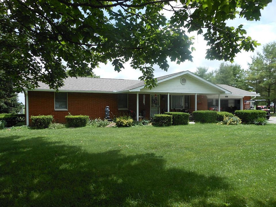 First time on the market! 4 bedroom 1 bath brick ranch on 4.4 Acres in Union County between Brookville Lake and Oxford Ohio. House features equipped kitchen bedrooms have wall to wall carpeting new roof. Oversized garage has washer and dryer hookup and cabinets for storage. Covered back porch as well as a front porch. 3 outbuildings to store your toys in as well as a stocked pond and a great garden spot.22 X 40 outbuilding with cement floor. 30 days possession on house and 60 days possession on the out buildings.