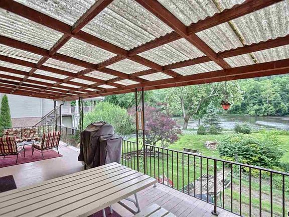 Retreat from a busy lifestyle to this creek side home at the end of the closed road. Enjoy outdoor dining from the covered patio on both levels. Watch water life from the warmth of the gathering room with brick wood fireplace. Hardwood under carpeting in the quiet areas next to a double bowl vanity bath. Lower level partially finished with room for additional living or sleeping areas. Full bath and laundry area.
