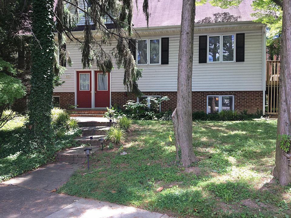 This is a two bedroom unit on two levels in a single family home in the lovely Yorktown neighborhood of Arlington. Unit has two bedrooms with one very large bath (two full sized separate vanities) on second level. Main level consists of kitchen with side by side refrigerator; granite countertops; and gas stove. Living room opens to large private deck. Laundry room is shared with other units in house. No smoking; no pets please. Tenant pays a flat utility fee of $150 per month; includes all utilities and Verizon Fios. Unit is 1000 sq feet and large patio/deck. Easy street parking and driveway parking too. Neighborhood is quiet but easy walk to public transportation. Near the Lee Harrison Shopping Center with Harris Teeter, Starbucks and much more! No smoking and no pets allowed.