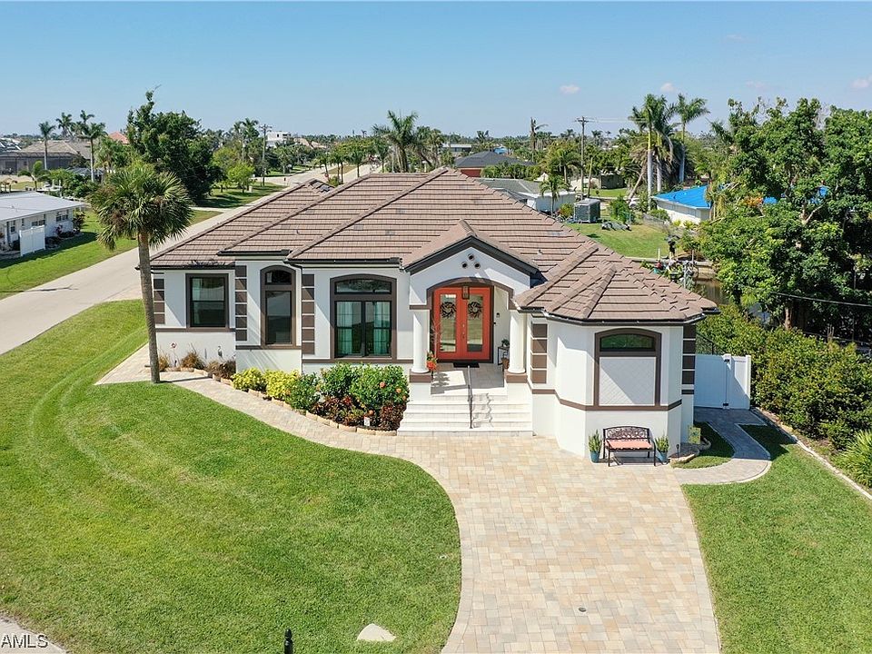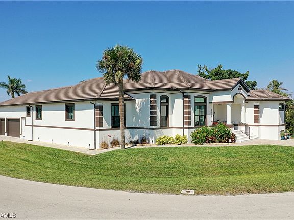 Welcome to your Cape Coral Yacht Club Estate Home! This truly Custom Home is being sold furnished/mostly turnkey and is Perfect for YOU or to place in a Vacation Rental program. Enjoy the Sunrise to the East with a view of the Caloosahatchee River and the Sunset overlooking the Pool/Spa/Canal in the Evening. The home features Travertine tile throughout, Tray Ceilings in all rooms, 90 degree Sliders to let the outside in, large open floor plan with two living areas, formal dining, office area and the BEST kitchen with Super Large Island and walk-in pantry. The Main Bedroom offers a great view of the pool/spa/lanai/sitting area and the Main Bath provides a walk-through shower/separate tub and EVEN A STACKABLE Owners suite Washer/Dryer…oh, and Toto Toilet. The Guest Bedrooms have attached Bathrooms and plenty of custom closet space. The owners have spared nothing…New Custom 16000lb Boat Lift and Dock, New “made for outdoors” Kitchen, New Custom professionally installed Garage storage and shelving, Total Ring Security System and more. You won’t want to miss this opportunity to own your piece of paradise today. See you soon!!!