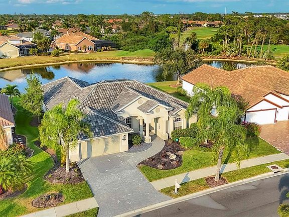 HERON CREEK GOLF & COUNTRY CLUB — Welcome home to "Mango’s Spot o’ Tee "! This casually elegant yet super-comfortable 3 BED, 3 BATH + DEN, 2,470 sq ft single-family home with heated SALT POOL & SPA is perfectly positioned on a premium homesite offering rare PRIVACY and WRAP-AROUND WATER/GOLF VIEWS overlooking the lake, the shimmering lighted fountain, and the tee of #4 on the Marsh Course, where the owners’ beloved pelican statue “Mango” roosts poolside keeping cheerful watch. The thoughtful split-bedroom floor plan features a serene , spacious, primary suite with lake views, dual walk-in closets, ensuite bath w/ split vanities, and a garden tub, while the private guest suite enjoys a pocket-door entry and access to a full bath. A generous sized den/home office offers sweeping lake views, and its adjacent full bath doubles as a convenient pool bath with direct lanai access. Sunlight fills the living room, formal dining room, open family room, Island kitchen, and dinette where cascading sliding glass doors expand the living area to a spectacular lanai with TWO generous undercover spaces—one equipped with natural gas and water hookups, providing the perfect foundation for a dream outdoor kitchen. This ONE-OWNER home has been gently lived in and is being offered TURN-KEY FURNISHED, reflecting pride of ownership with SIGNIFIGANT UPDATES for Peace of mind : including a NEW tile roof (2022), new RE-PIPED plumbing (2024), NEW AC with built-in air filtration (2025), NEW water heater (2023), and NEW pool heater (2023), plus extra spacing between neighboring homes for enhanced tranquility. Just a short golf-cart or bike ride from Heron Creek’s 21,000 sq ft clubhouse, 27 holes of Arthur Hills-designed golf, tennis, fitness center, and resort-style pool, Mango’s Spot o’ Tee offers the perfect blend of Florida sunshine, casual elegance, and a touch of UK charm—a move-in-ready retreat where every day feels like a holiday .Heron Creek offers exceptional amenities including a 21,000 sq ft clubhouse, 27 holes of Championship golf Arthur Hills design, resort style pool & spa, a robust social activity calendar, fitness center, Tennis courts & formal & casual dining options! Club Membership is required with 3 membership levels offered beginning at $276/month *NO CDD FEES * LOW HOA FEES include lawn care, trimmings, mulching, irrigation, FIBER OPTIC/ TV/ HIGH-SPEED INTERNET & Gated entry, conveniently located w/easy access to I-75 & US-41, Cocoa Plum Shopping, Myakkahatchee Creek trails, WELLEN PARK, Braves Stadium, COSTCO & will be just 3 miles to the new 507 Million SMH Hospital Coming to I-75 and Sumter Blvd!