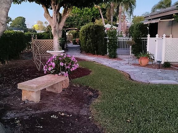 Meticulously well appointed waterfront Home featuring almost a half-acre of Resort style grounds on 125 feet of waterfront, within minutes to the open Waters of the river and on to the Gulf of Mexico. This residence radiates a gentle Mediterranean ambiance, enriched with natural stone, Travertine, luxury vinyl plank floors, exquisite granite and marble countertops, tailor made cabinetry, top tier finishes including crown molding, 5 1/4" baseboards, and more. The finished garage can be used for office, exercise room, storage, or car. Gorgeous free form swimming pool with fountain and waterfall. An oasis with courtyard, deck, pergola, gazebo, arbor, Belgian cobble edge walkways, flagstone walls, night lighting, vegetable/herb gardens. Truly breathtaking - an unparalleled experience of luxury stress-free waterfront living. Spectacular sunsets with back facing West.