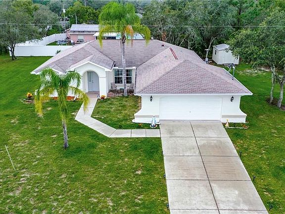 Welcome Home! Take a look at this 3 bedroom, 2 bathroom, 2 car garage POOL home in the heart of Spring Hill. Located near SR-50 with close proximity to Oak Hill Hospital, Florida's Suncoast (SR-589), and so much more. This home was built in 2003 and includes features such as a self cleaning pool. brand new pool pump, brand new carpet in the bedrooms, brand new AC 2020, and repainted outside. Inside the home you will find a split plan with an open floor plan and a vaulted ceilings as well. This home sits on .5 acres and is ready for occupancy. Schedule your private showing today!