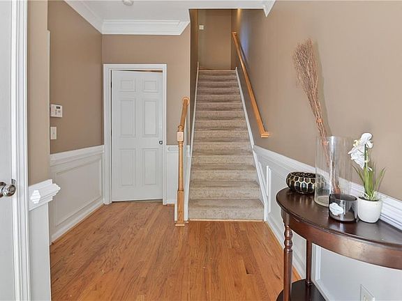 An "Exquisite" Townhome centrally located in the Vinings/Smyrna area just 15 mins to Midtown, Downtown, Hartsfield, The Battery. Wonderful Floorplan with Large Bedroom and Bath on the entrance level. Second level is the Entertaining Spaces for the most discerning buyer. Formal, yet comfortable. Flooded with natural light. Gourmet eat in kitchen features cabinetry, granite and an island leading to the deck. Home has been completely repainted, hardwood has been resurfaced along with deck. This will go fast. CALL NOW!! Additional Information-Very Quiet Small Community, Additional Parking directly in front of townhome, guest parking at base of community and near Dog Park!!!!!