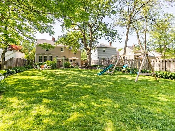 This Lyndhurst 4 bedroom, 2 bathroom charmer has one of the most beautiful quarter acre yards you ever did see! Overlook the fully fenced in yard with a privacy fence from the concrete patio under the shade of a century old tree. In the front, find gorgeous landscaping and a driveway in great condition with additional side parking spot for your guests! Step inside and behold beautiful hardwood floors in the charming entryway. The living room with wood burning fireplace has a picture window where southern light pours in. Opening to the charming dining room which flows over to a sunny flex room currently used as a playroom and office space! A perfect 'catch all' additional living space. The kitchen with custom cabinetry, full set of appliances included and tile backsplash overlooks the stunning backyard. Upstairs, find four nice sized bedrooms with original hardwood throughout! The bathroom, remodeled in 2014, features a tub shower and classic beadboard paneling. In the lower level, find a recreation room finished out in 2012, with ample unfinished storage, second handy full bathroom and laundry area! Full attic of storage. Home is located in picturesque neighborhood on a tree-lined street & in walking distance to pool, playground & shopping.