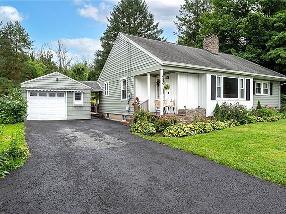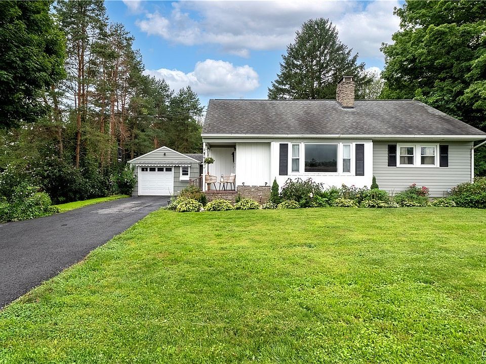 This adorable 3-bedroom, ranch is one you don't want to miss. The kitchen was recently remodeled with spacious cabinets, granite countertops, a double wall oven, and all new stainless-steel appliances. You'll love the cozy large living room with the wood fireplace, new recessed lighting and led "mood" lighting. So many updates have been done...all new electrical, plumbing, furnace, central air, hot water heater, windows, bathroom and more! Enjoy the spacious backyard (just shy of an acre) from the new composite deck! The seller recently added a new hot tub and will allow the hot tub to stay with the right offer!! Live in the country with the convenience of a short drive to Auburn, Camillus or Syracuse! The bonus is there is a golf course very nearby! Additionally, there is a 2nd wood burning fireplace located in the basement, which lends itself to potential additional living space!
