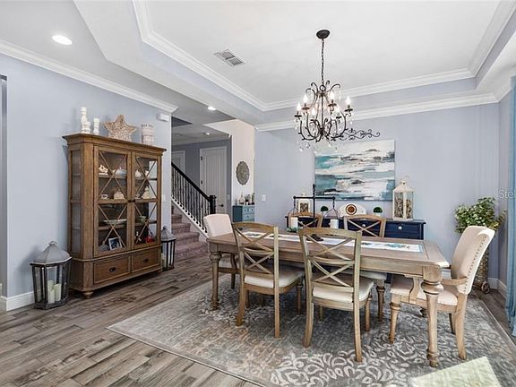 - Interior Features: Ceiling Fans(s), Eating Space In Kitchen, High Ceiling(s), Master Bedroom Downstairs, Open Floorplan, Stone Counters, Walk-In Closet(s), Crown Molding, Solid Wood Cabinets, Thermostat, Kitchen/Family Room Combo, Solid Surface Counters, Window Treatments, Vaulted Ceiling(s), Tray Ceiling(s)