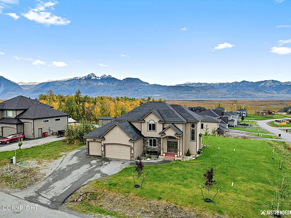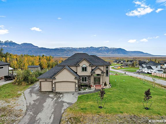 **Property has multiple offers.** Incredible mountain and inlet views await you in this stunning custom home. Lay in bed and take in the northern lights and Twin Peaks from your master suite, complete with walk in closet, soaking tub, and separate tile shower. A true gourmet kitchen with 3 ovens, large pantry, and backyard access make this the perfect home for entertainingwhile your guests take in those views. The bonus office off the front entry not included in that 4 bedroom count make this layout perfect for the work from home or entrepreneur. All 4 bedrooms and laundry upstairs, with well thought out storage throughout this home to include a huge storage shed, all nestled on a large, fully level lot. This home is the perfect set up. Located on the Bluff side of the Ranch Subdivision, this home has an excellent commute location for those headed to Anchorage and Machetanz Elementary is a short walk away. Don't miss out on this amazing home!