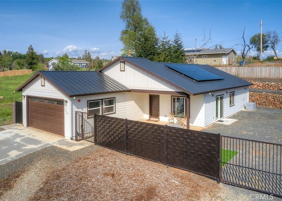 Tucked into lower Paradise with a vibe that’s private and dialed-in, this energy-efficient home comes equipped with a 4.38kWh owned solar array, metal roof, and custom steel gates that give it a strong, secure edge. Inside, the layout is open and inviting with warm wood cabinetry, quartz counters, and a full suite of appliances—including the fridge—already in place. The kitchen and living areas are built to entertain, with great natural light and smart recessed lighting throughout. A pair of steel rolling doors add a custom touch you won’t find just anywhere, and the room off the main living space gives you flexible options for an office, workout zone, or media room. The primary suite is a standout with a walk-in closet, dual vanity, and tiled walk-in shower that opens to views of your expansive backyard—ready for your vision with room to play, grill, and relax. With an oversized garage, potential RV parking, and that solid custom fencing all around, this one’s got strength, style, and space.