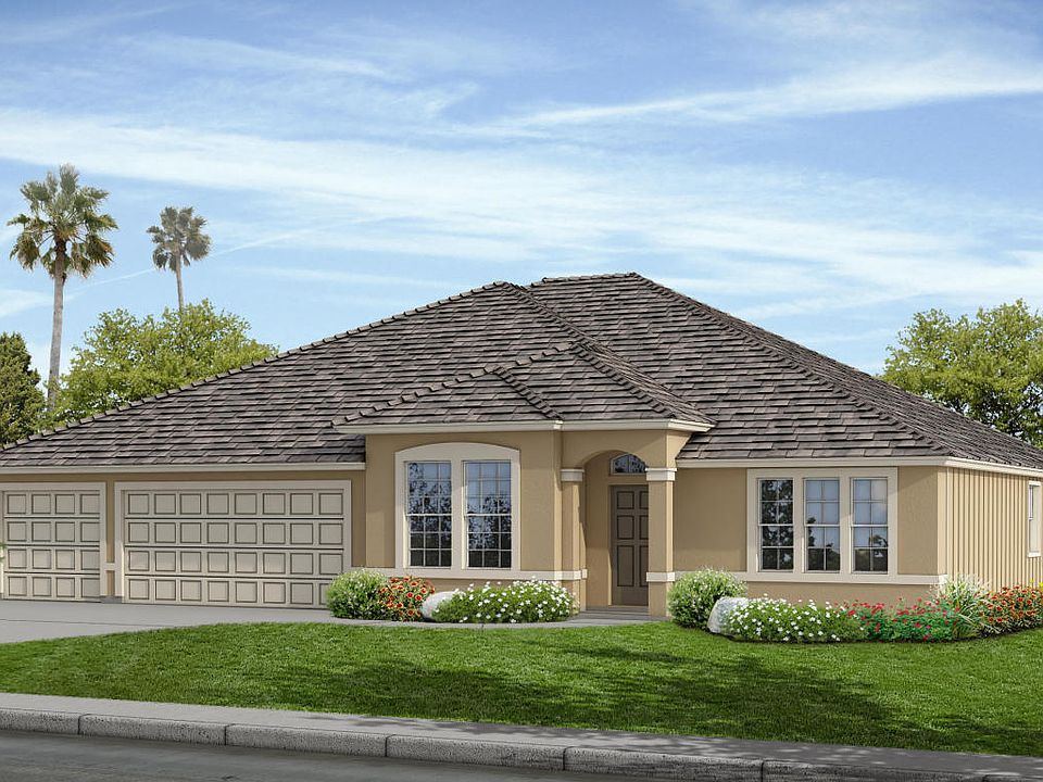 The Delray floor plan in Tidewater features stucco and ledgestone front, gourmet kitchen with granite counters, crown moulding, double step tray ceiling at master bedroom, pendant lights, and stainless steel appliances. Just minutes away from I-295 and the St. John's River, Tidewater is the ideal place for new and established families alike. Choose from several distinctively designed floor plans and create a home that is a truly unique reflection of you and your family.