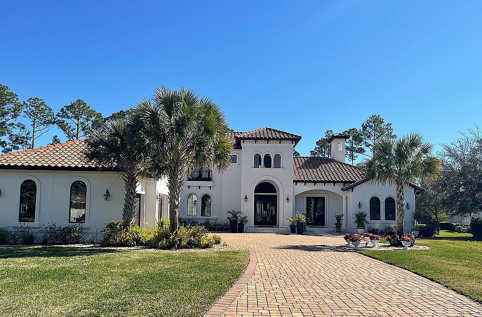 Welcome to the epitome of waterfront luxury living in the prestigious enclave of Pablo Creek Reserve! Nestled on a sprawling half-acre lot and encompassing a grand 5,047 square feet, this lakeside masterpiece stands out as a true gem amidst a sea of waterfront properties. Prepare to be enchanted by this architectural marvel that boasts five bedrooms and five full bathrooms, ensuring ample space for you and your esteemed guests. Step outside into your private oasis, where an inviting infinity pool awaits, surrounded by lush landscaping that perfectly complements the serene waterfront view stretching an impressive 170 feet. Stepping inside, the opulence continues to unfold. Flooded with warm, natural light from large panes of glass, the interior exudes an air of elegance and comfort. The soaring ceilings create a sense of grandeur, while floor-to-ceiling windows frame breathtaking views of the shimmering waterway, creating an enchanting ambiance throughout the home. No detail has been overlooked, with every space thoughtfully adorned with high-end finishes and state-of-the-art appliances. The updated kitchen is a culinary dream, featuring a sweeping marble island and countertops, double ovens, and custom cabinets that evoke the finest elements of Parisian design. Retreat to your sanctuary in the spacious primary suite, offering a massive walk-in closet and a spa-like bathroom designed for ultimate relaxation. Luxuriate in the dual walk-in shower or unwind in the freestanding soaking tub, all complemented by stylish dual sinks. Beyond the main residence, an on-site fitness center awaits, providing both a space for maintaining your well-being and a three-car garage for your automotive treasures. The meticulously designed outdoor spaces beckon you to unwind in various patios, take a stroll in the elegant garden, or indulge in gourmet delights at the outdoor chef's kitchen, embracing the coveted Florida lifestyle of al fresco dining. In this exclusive community, you'll discover an unparalleled combination of comfort, sophistication, and natural beauty, befitting the discerning tastes of the truly affluent. Surrender to the allure of this waterfront sanctuary, where every amenity has been curated to exceed your expectations. Welcome to your dream residence in the Sunshine State – a home that embodies the essence of prestigious waterfront living, where luxury meets nature, and every moment is a celebration of life's finest pleasures. Come experience the unparalleled lifestyle that awaits you in this lakeside haven, where tranquility, opulence, and breathtaking views converge into an unparalleled masterpiece.